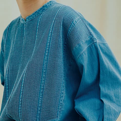 身頃や襟、フリル等の生地が重なるデザインも、軽やかに仕上げています。お手元の洋服と組み合わせることで、装いに美味しい彩りを生み出すことを願っています。
