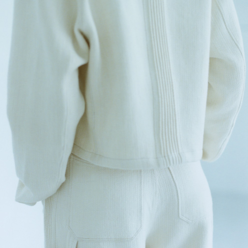 シルエットは柔らかく軽い素材を活かし長めの袖丈や着丈に設定しています