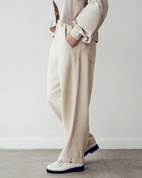 極限まで太い糸を高密度に織り上げることで手織りならではの柔らかな風合いを追求してきました